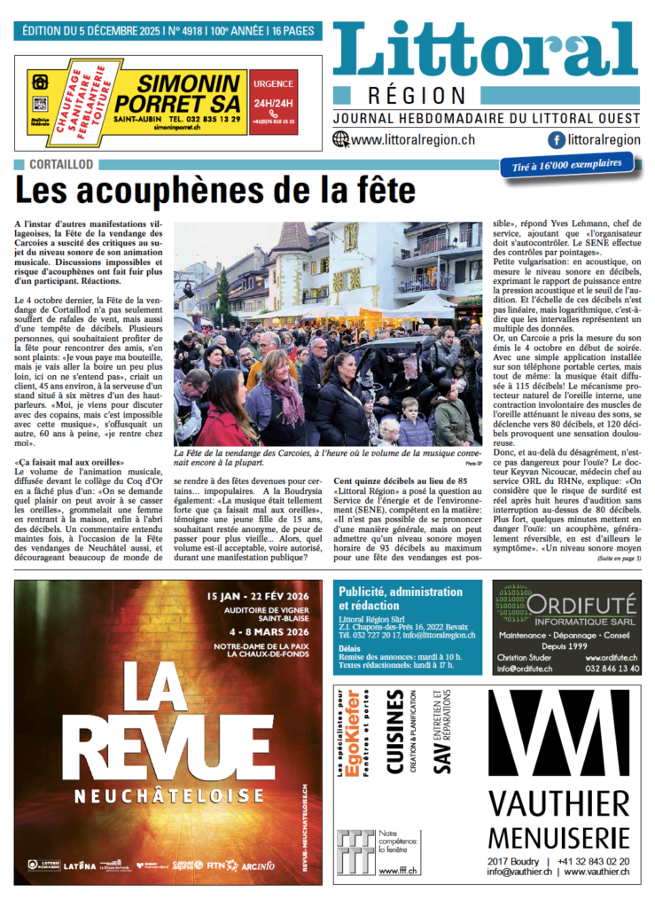 L’équipe rédactionnelle, dirigée par une rédactrice en chef et soutenue par plusieurs correspondants, travaille chaque semaine à la réalisation d’articles riches et variés portant sur la région. Il vous tient informé des événements qui ont lieu sur le Littoral ouest de la région neuchâteloise. Reportages, portraits, communiqués, interviews figurent en bonne place.