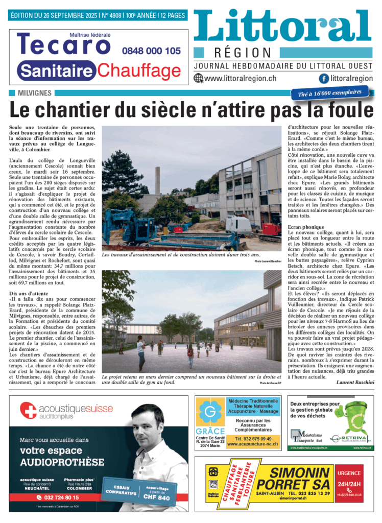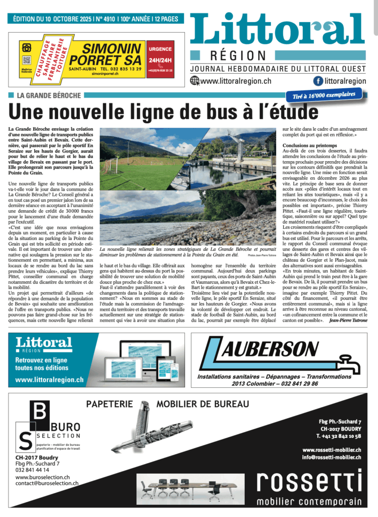 Distribué à 16’000 exemplaires, Littoral Région couvre les communes de Boudry – Cortaillod – Milvignes – La Grande Béroche et Rochefort.