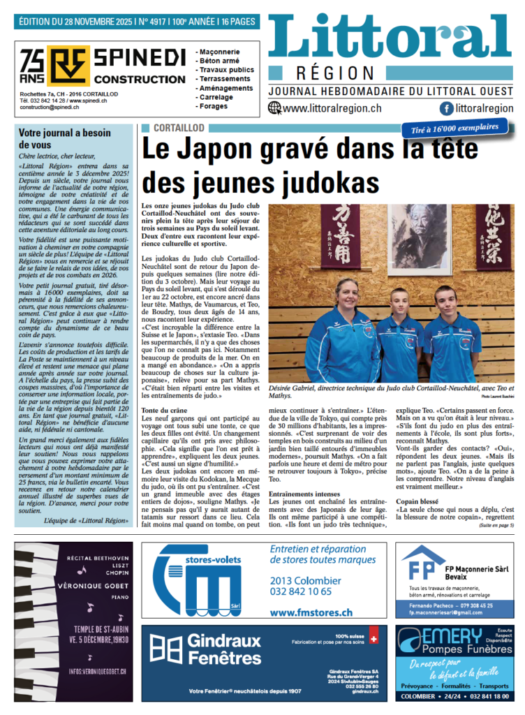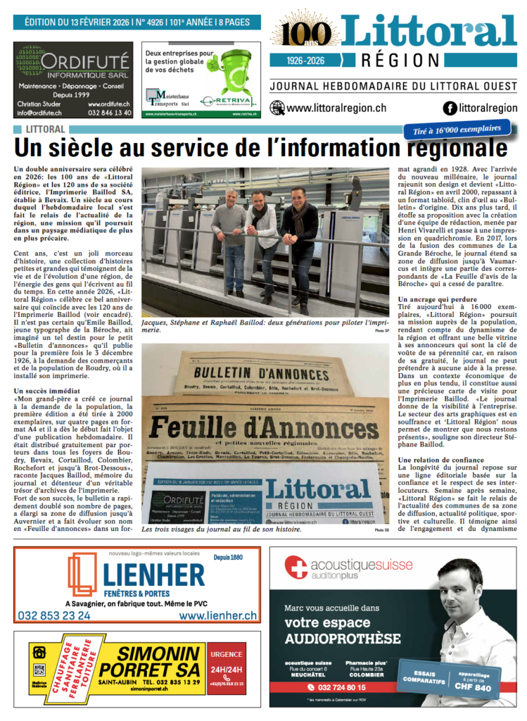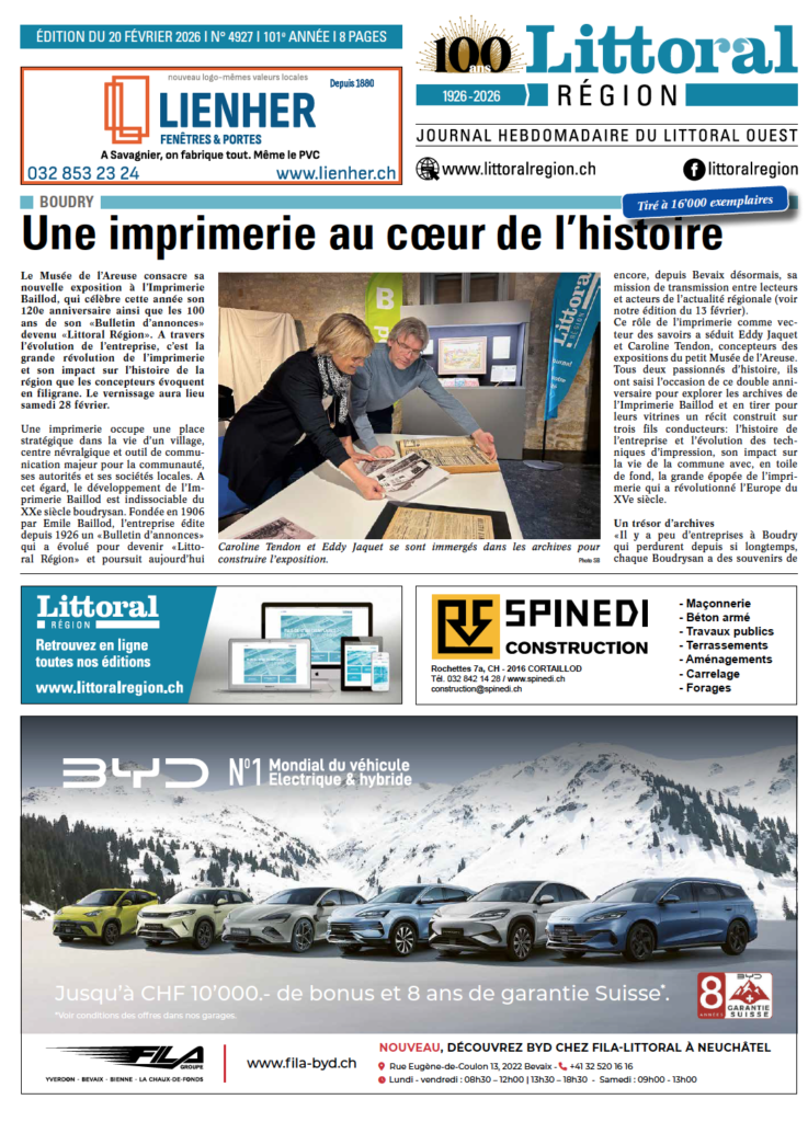 L‘imprimerie Baillod est l’éditeur du journal régional Littoral Région.